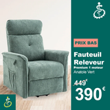 Fauteuil Releveur Premium - 1 Moteur - Vert - Modèle Anatole - Tranquille Émile